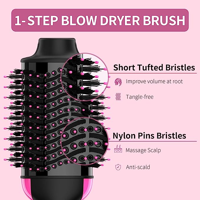 • 💖【Secado 4 en 1, suaviza y da volumen al cabello】Diseño único de cepillo ovalado para suavizar el cabello, mientras que los bordes redondos crean volumen. Diseñado con pasador de nailon y cerdas copetudas para desenredar, mejorar el volumen y el control, perfecto para refrescar el cabello del segundo día. A diferencia de los secadores de pelo convencionales, este voluminizador se puede colocar más cerca de tu cuero cabelludo para una máxima elevación